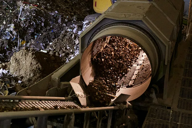 廃棄される資源を無駄なく再利用するため、破砕・選別などの再生処理を行い、金属・プラスチック・ガラスなどのリサイクル材を生産しています。