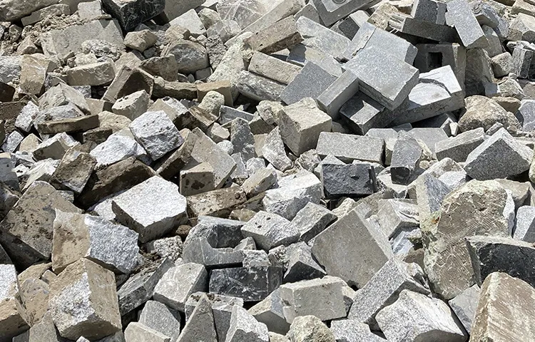 建物の解体や道路工事で発生するコンクリートやアスファルトの廃材(ガラ)や、役目を終えた庭石や墓石などの天然石を破砕し、道路の路盤材などに使われる再生砕石を生産しています。