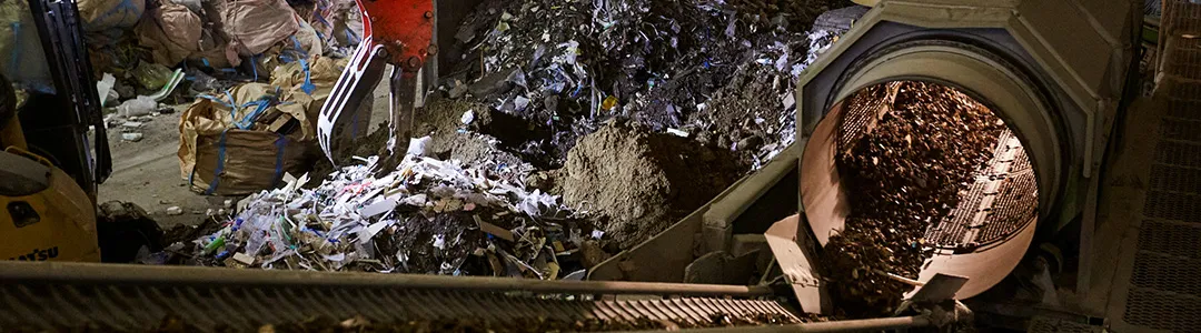 中間処理とは、廃棄物を再利用可能な状態にするために、破砕・選別・圧縮などの処理を行うことです。搬入される廃棄物には多様な資源が混在しており、「選別」はリサイクルを進めるうえで非常に重要な工程です。当社グループでは、最新の選別設備の導入などを通じて、リサイクル率の最大化に取り組んでいます。