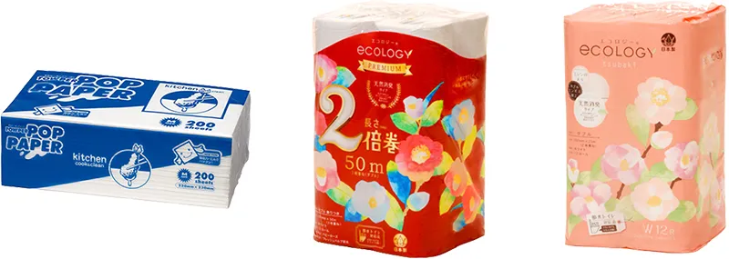 3月末現在の株主名簿に基づき、300株(3単元)以上保有の株主様を対象に、当社株式の保有数および保有期間に応じて、トイレットペーパーやペーパータオルなどの優待品をお選びいただける株主優待を実施しています。