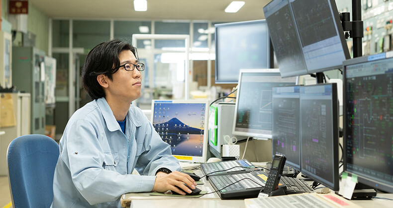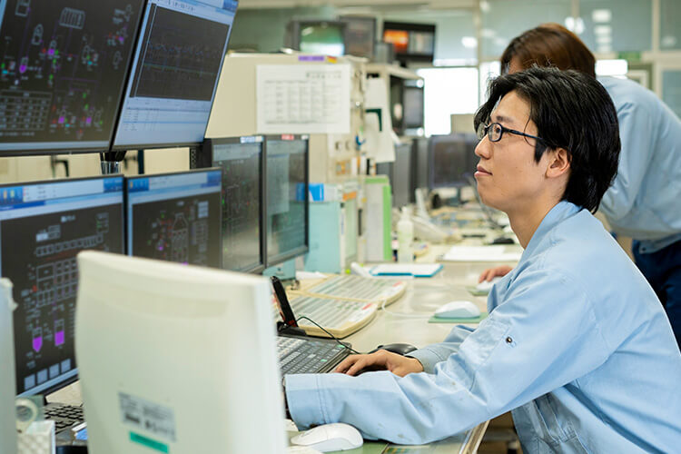 電気・蒸気・エアーなどを安定的に工場設備に供給する、エネルギーの運用管理を行っています。