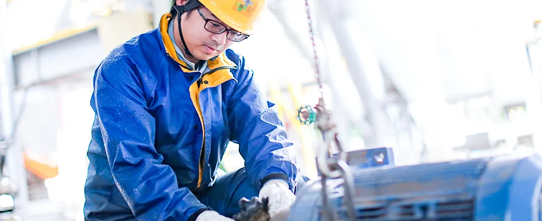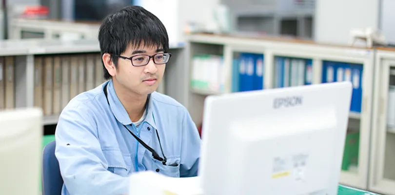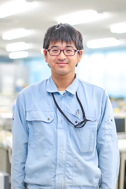 工務課では1人が1基以上の設備を担当しており、それぞれ自分の担当マシンの定期・突発工事の対応や設備改善案の立案・検討を行っています。突発でトラブルが起きた際は、なるべく短い停止時間で復旧する必要があるため大変ですが、工事施工完了後に試運転をした際、マシンが問題なく運転している様子を見ると達成感を感じます。現在私は設備のサブ担当として業務に携わっていますが、いつかは職場の先輩方のように自分の担当マシンを持つことが目標です。