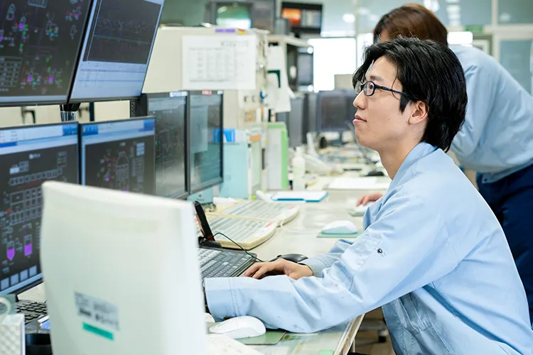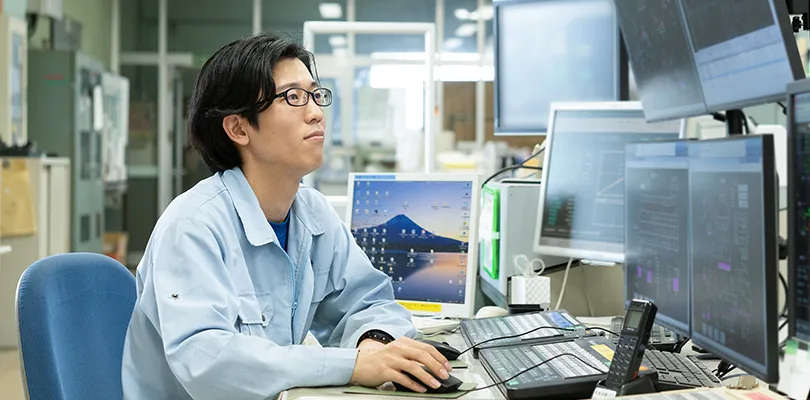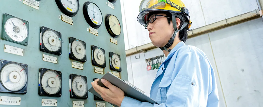 電気・蒸気・エアーなどを安定的に工場設備に供給する、エネルギーの運用管理を行っています。