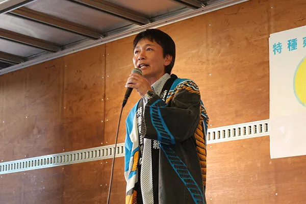 納涼祭であいさつする松田社長(当時)